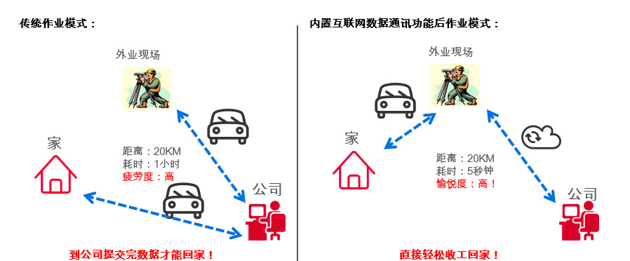 打破傳統(tǒng)城市測量模式必須回到公司才能進行數(shù)據(jù)傳輸?shù)亩ň郑乱淮鶷Z系列全站儀能夠隨時隨地的實現(xiàn)數(shù)據(jù)成果分享,測量結(jié)束后直接收工回家,大大降低工作強度,感受更加愉悅、輕松的測量體驗!
